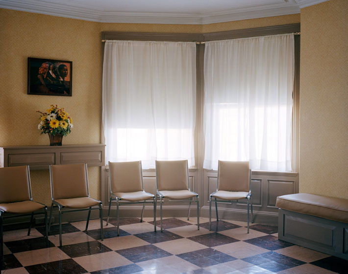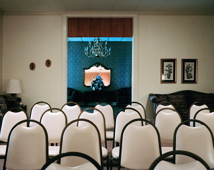 In making pictures of these spaces, my intent is to create an unbiased perspective for the viewer. There are no judgments passed in the compositions on the funeral homes or their practices, nor on the traditions and customs chosen by any person or group as to how they honor their dead. The desire is that these images give the viewer the ability to contemplate the spaces without the usual sorrow and to see them as an acknowledged and inevitable part of our lives.
