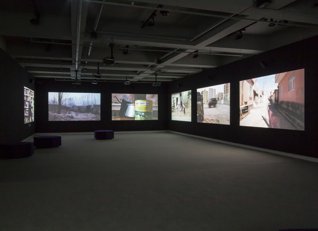 What do borders designate? How are they determined? How and when do they transform? In which cases do they become a realm of danger? What kind of economy does a border create in the borderland? 1+8 is an eight-channel video installation by Angelika Brudniak and Cynthia Madansky that focuses on the borders of Turkey with her eight neighboring countries: Armenia, Bulgaria, Georgia, Greece, Iran, Iraq, Nakhichevan, and Syria. In the installation structure, the projections are placed in geographical locations as in the real order of the map. The borders of eight neighbor countries surround the viewer as each border is screened separately, so the viewer is situated among eight countries. The footage runs simultaneously on the screens, governed by an algorithm that plays something different each time, instead of repeated loops. Accordingly, it gives the viewer a unique experience of viewing the installation each time with an unlimited combination of eight screens.