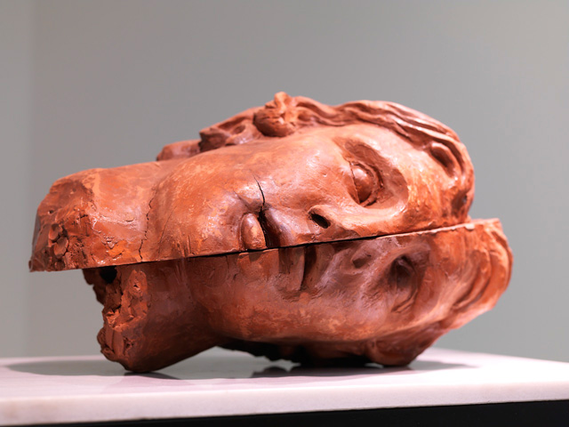 In “Gordian Knot”, the method applied in exhibiting the sculpture may be read as an extension of a similar questioning. The head, separated from the body, and placed horizontally on the pedestal, succeeds in disrupting the monumentality of a passionately adopted “national hero”. Concepts evoked by the sculpture are vulnerability and fragility, rather than might, power or grandeur. This ambiguity entails dualisms such as life/death and sleep/wakefulness. The unconventional display no doubt relates to the link between exhibition and propaganda, or in other words, the negotiation that takes place between the exhibitor, the exhibited, and the audience. What lies in the centre of this negotiation is the ongoing instrumentalisation of heroes in the construction of common identities. Focusing on the close relationship between the field of cultural heritage and belonging, continuity and display, it is important at this point to state that Çavuşoğlu begins this investigation within the context of contemporary art.