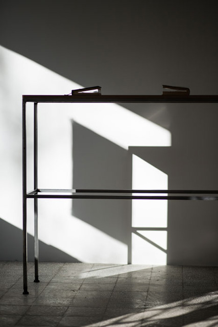 Jacob Kassay’s works—exhibited in Istanbul recently through Protocinema at an empty storefront—explore the materiality of his media. The exhibition includes three works—a film, an installation of transformed library books, and Kassay’s renowned silver paintings. The 16 mm film, Untitled (2011), shows a helicopter rising above the ground in the desert. The rotation of the helicopter’s blades synchronize with the frame rate of the recording camera, 24 frames per second. The synchronization of the two machines, the camera and the helicopter, create an image of stillness, canceling out the motion that keeps the helicopter in the air. The glass wedges, now nested in books from local libraries, point to the functionless aesthetic that is produced by the wedge’s placement in the otherwise circulated, used object of the book. The wedges become a lens that add a physical third dimension to the book pages, foregrounding the materiality of these objects. Installed on a table near the window of the storefront, this specific installation of the works mimic a book store—an understated gateway to the film and the paintings. The silver paintings, almost disregarded, are tucked away, the end products of a process-driven approach to painting in which Kassay produces reflective surfaces that are then situated in the specific architectural context. As he states in a recent interview, “The whole point is that the thing is being absolutely transformed, also that I was somehow removed in this process, all I had to do was develop a support for the catalyst and then it was then out of my hands but this is not unfamiliar territory for painting.” As Lara Ögel, an artist whose work is about building very specific relationships with her found objects and materials on print, points out, Kassay’s work is about keeping a distance from the contents of the site-specific to explore the media that he tampers with.