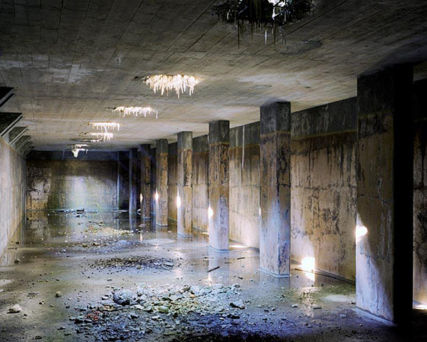 Turning the pages of Garbasz’s book, I observe an uncanny silence in the images. I read the excerpts of Salla’s memoir accompanying the images and ponder on what is not apparent in the text and the images: What kind of violence had happened? The road Salla walked during the death march, captured in the photo Marinebad 2005, is now part of a calm and sleek, white European city. Abandoned places, such as the underground concentration camp in the photo Christianstadt 2005, are reminiscent of dystopic sci-fi movies, particularly the zone in Tarkovsky’s Stalker, where the characters of the film travel to the savage places by following a belief to find the place that will fulfill the innermost desires.