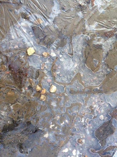 12 | Drawing | is a form of tracing—Salwa’s drawings transliterated into fluid objects are reminiscent of cartography. The frozen puddles on the pavement already contain this gesture of making permanent what was fleeting at best.