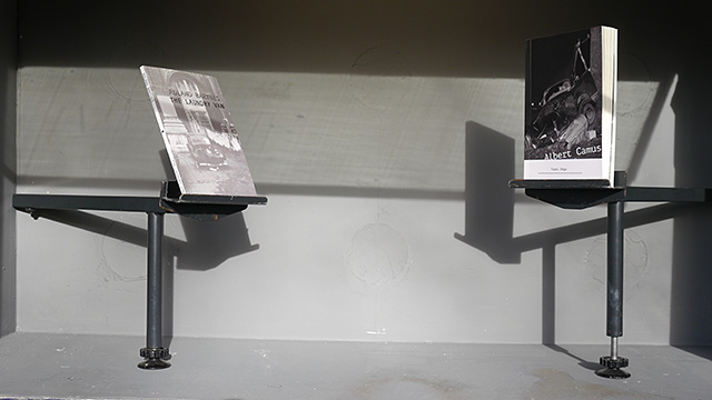 Vaughan’s line also led to the installation in the parallel space of the exhibition in De Kijkdoos. Meaning a viewing box or peep show in Dutch, De Kijkdoos turned into a suitable setting for the installation that also focused on artists/writers/directors whose works were in the production stage and been affected by their fatal accidents. This is the moment that Demirci steps in and “creates” books by Albert Camus and Roland Barthes, or a movie that Theo Angelopoulos could not complete. Demirci employs Roland Barthes’s statement “The death of the author is the birth of the reader” while producing these works on their behalf. Barthes was hit by a laundry van in Paris, while walking home from a lunch given by François Mitterrand, the future president of France, and died a few weeks later from the complications of the crash. Barthes describes literature as a space “where all identity is lost, beginning with the very identity of the body that writes”. The death of the author marks the birth of literature, defined, precisely, as “the invention of this voice, to which we cannot assign a specific origin”. Indeed, the “modern writer” – or “scriptor” as Barthes calls him – can only mimic “a gesture forever anterior, never original” by recombining what has already been written. As Barthes puts it, “It is language which speaks, not the author” – or the scriptor for that matter. The key to a text is not to be found in its “origin” but in its “destination”: “the birth of the reader must be at the cost of the death of the author.”