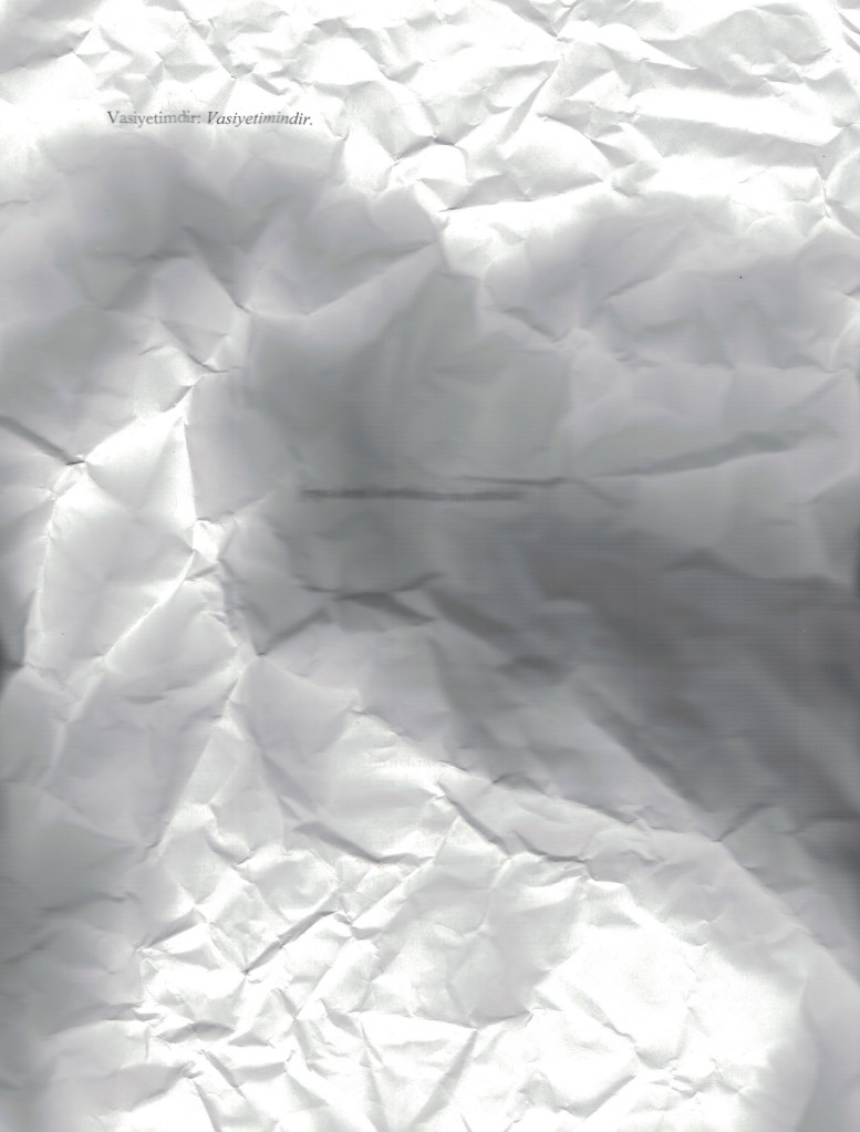 *Vasiyetimdir is a Turkish phrase that can roughly be translated into English as “It is my will that…” The phrase holds a tint of the melodramatic, mixed with a sentimental flair.