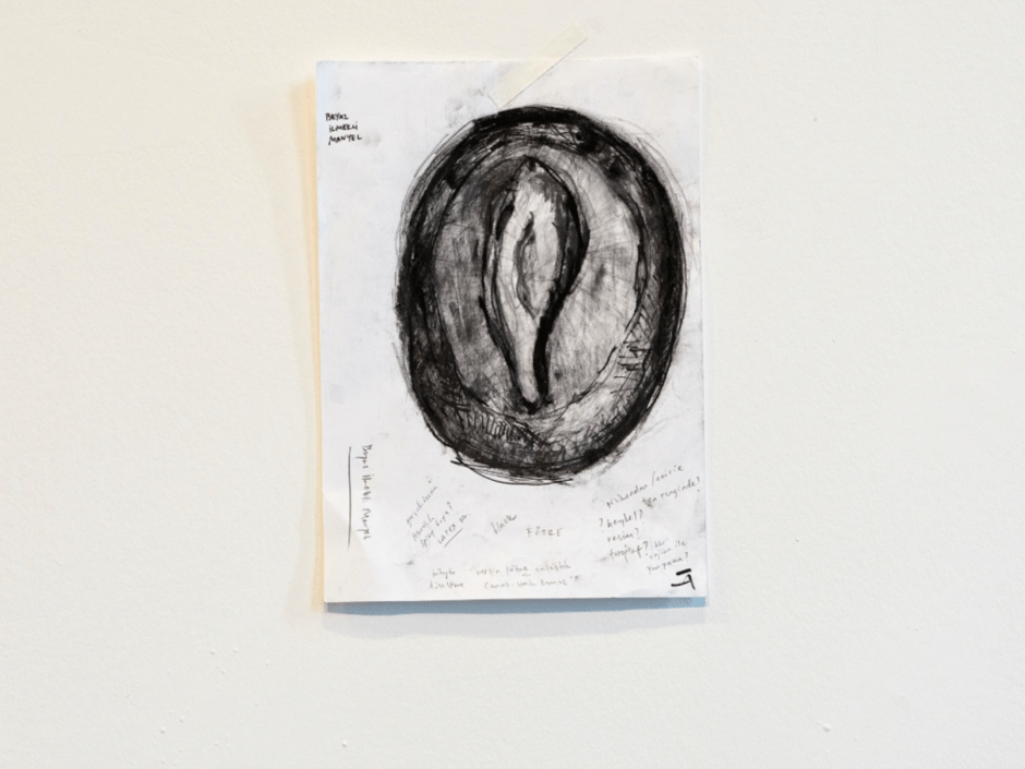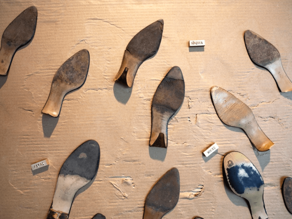 The text snarls, squeals, stammers; talks in tongues and screams through the mouth of these three people. The chaotic sound world of 5PB, its indistinct subjects and embodied furnitures that resemble confession units start to become distinct. The desire of 5PB and its subjects to separate from its viscous body has begun. The mouth which speaks has gained in precision. But still these subjects can’t go beyond each being a mouth. The text is still a closed text and it is charged with codes. The sounds (such as KK), the words (such as Uçuk), the concepts (such as Sızı) emerge from the text, just like Alaaddin’s genie would emerge from a lamp. They become objects as stamps on shoe soles which were ripped from second hand women shoes, words on collars that are cut off of shirts, poems for rear view mirrors and gilded names for apartment buildings. Not only they become objects, they become memory and form by physically performing the act of ripping, tearing, displacing, dismantling etc. They reproduce typologies of the public life: A whiteness (a master) that never stains its hands, an officer (a mediator) that enforces power, a woman (a slave) that cleans the dirt… The forces of Beyaz İlmekli, Kornatlı, and Albay are so and so effective that they take over the exhibition space of Galeri Manâ three times over the course of a month-and-a-half exhibition. The signified space transforms three times. As these subjects cannot dissociate from one another and as they are connected with traces, paths, and shared memories, they eventually bounce off of each other and kickoff in the pages of the book as they do the same in the physical gallery space.