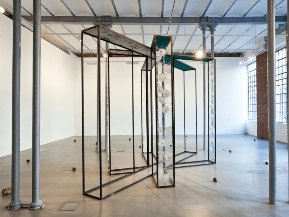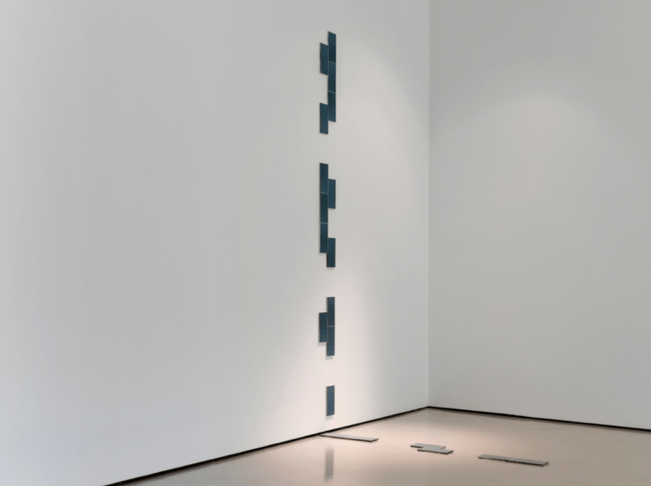 The memories of the unconscious or of the subjects that seep into the objects of 5PB and B.İ.M.A.B.K.R. and to Loyelow, although comprehensible through forms of knowledge of here and now, of this territory, and of this geography, yearn to dissociate themselves from their belongings: the window cage nailed to the white underwear elastic (E1, 2011), a TV screen turned on all day behind a translucent glass (Frosted Glass, 2011), a monumental vitrine (Vitrine, 2013), a shoe heel carrying a pin (Heel, 2013), a Tetris game made up of bathroom tiles (Cosmic Blue, 2016) or tea glasses filled with cooked rice (Ku, 2016). With their desirous textures, the layers they adapt from concept to material, their shifting boundaries and the synthesis they create are not representational.
