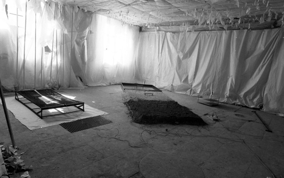 There is a sense of remoteness when one confronts a work of art only through its photograph, especially knowing that the work has been destroyed. Resistance: in Memory of a Dead Bedspring was installed for the first time in Çekil’s studio at the Beaux Arts in Paris in 1974. A year later it was installed for the second and last time as part of his only solo exhibition in Paris, Réorganisation pour une exposition, at the basement of a bar at the Latin Quarter. Despite the black and white tones of the static photograph, and beyond the passing of its author, I imagine it as alive and glowing with tension in physical reality. Seen from our current state of global unrest and in connection with the rise of walls and barricades all over the world against millions marching for their lives, for peace, for equality among humans and with non-humans, Çekil’s emphasis on energy, on its accumulation over time in giving form to matter and all else that surrounds us couldn’t be more relevant today.