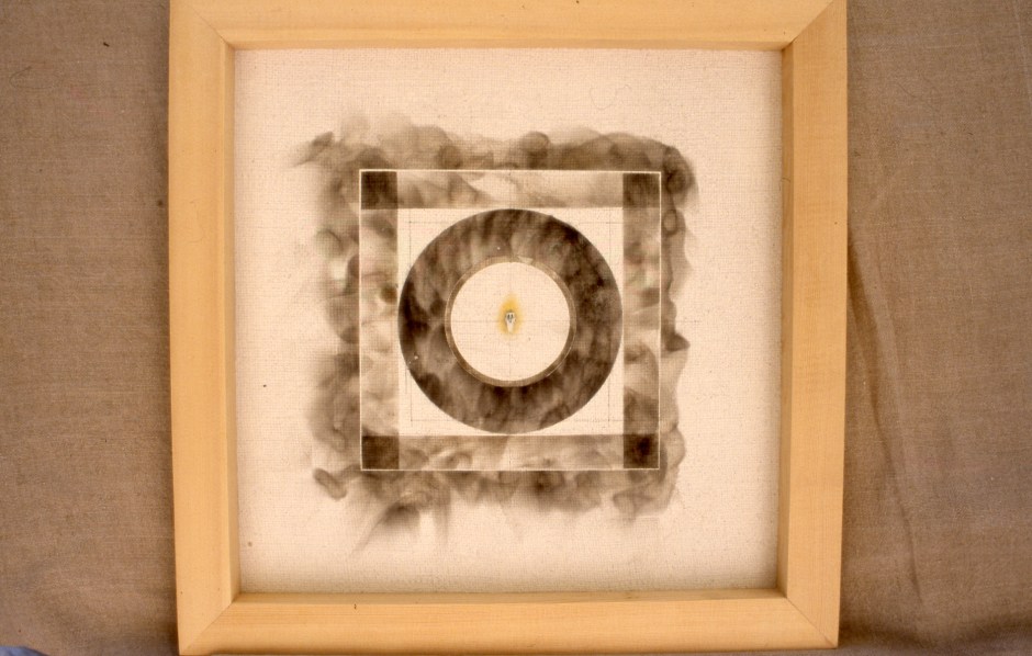 MÜ: In thinking about flatness as a surface both in and out of painting, I want to talk about Mumlamalar (Waxings) (1999), which is a series of square paintings on jut where Çekil used candles and smoke to create geometric forms. The relationship with “muska” [2], a trope he uses in this work, both in form and in function, strikes me as a direct reference to art as a holder of some sort of a healing power.