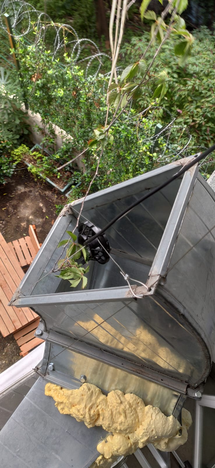 Guided by the specters of the nine joints and the breathing wind, this past September, I built With the Wind. With the Wind is a radio transmission. Installed on SAHA Studio’s balcony and constructed from locally-derived materials, the wind-catcher made of repurposed ventilation pipes is from where the transmission is made. The transmission has two channels: the first channel is the sound of the air passing through the wind-catcher and the second is the sound recordings collected from various media channels including TV and radio from Turkey in which sets of words are collated about Taksim and its surroundings. The sound recordings are realigned constantly. The wind is utilized as an element that carries, narrates, and collects; With the Wind is added onto the already-existing infrastructure of the air vents in the studio space, with which I search for the possibility of radio transmissions to be embedded in a place. Using the method of montage to expand language, I attempt to oblige the already-existing transmissions to be reconstructed. This work is also an articulation of my wondering what site-specificity can mean, now. Near an increasingly policed Taksim Square, I hold on to the narratives and whispers about what the square has been and what the square can become, knowing and appreciating that there is no linear text that can be written about this place; the best I can hope for is to hold my ear against the ground, the trees, the walls, the winds that carry, the winds that erode.