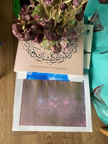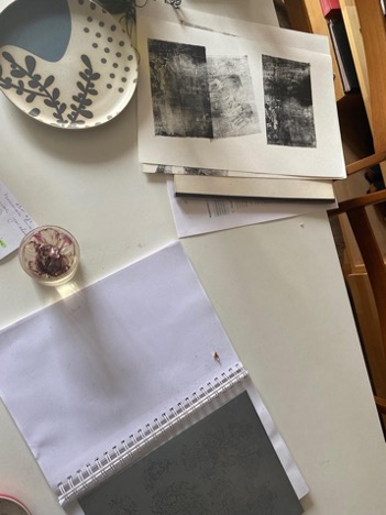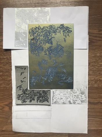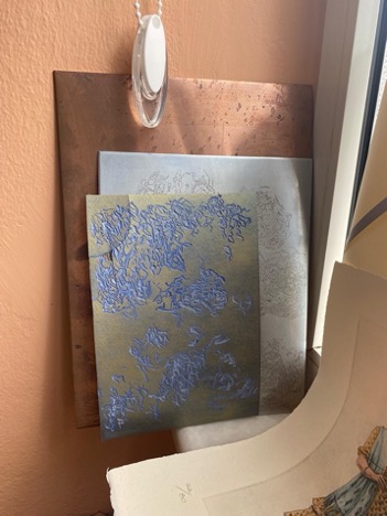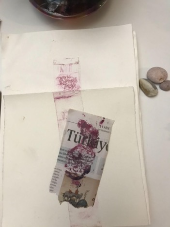 Also, we clean the etching plates with pieces of newspapers. And I’m attaching one of the many convergences that happen. I wanted to share this with you.