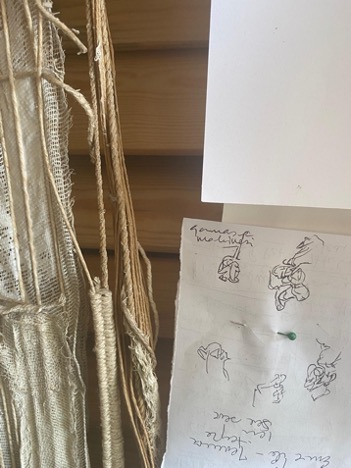 For example, we are folded on to ourselves at home. What I was trying to say was that we were folding in front of and behind the divider, but there is also the sensation that we are putting up with something there. When I say I’m folding onto myself, there is a similar meaning there too.