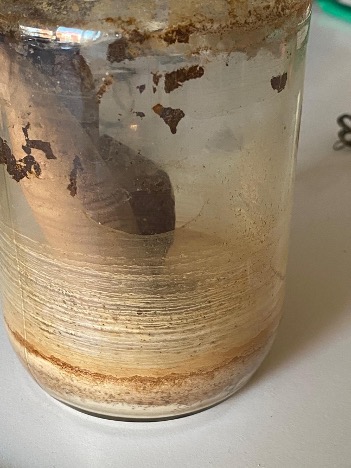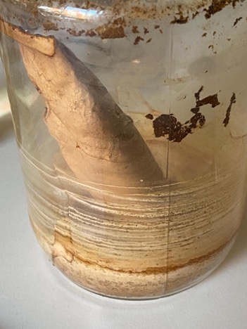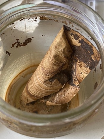 During the process of this text’s coming into being, the vertical sheet of paper has soaked in all the water, then dried. It has settled into the jar.