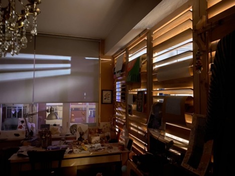 It is as if—from here—those flower drawings on that sheet (the peonies across from the sheet of paper that are about to dry)