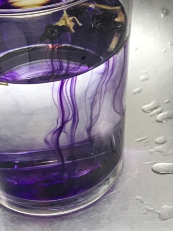 When dried flowers fully bled their color into the water, when the vertical line disappeared, I began to draw the flowers across from me with the same colored water.