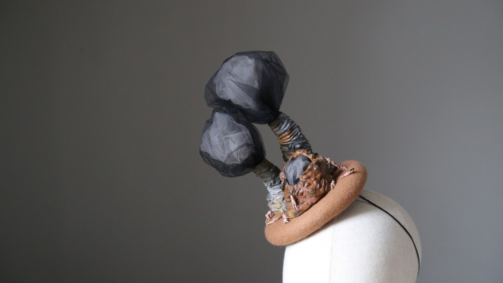 Through my headpiece collection “Terra Nullius”, I speculate on narratives concerning terraforming and Earth’s extending boundaries, inevitably yielding itself to resource exploitation from ocean trenches to the asteroid belt. Through these headpieces, I delve into the ethics of space exploration within a world that possesses ever-expanding boundaries towards micro-gravitational environments, with a touch of humour.