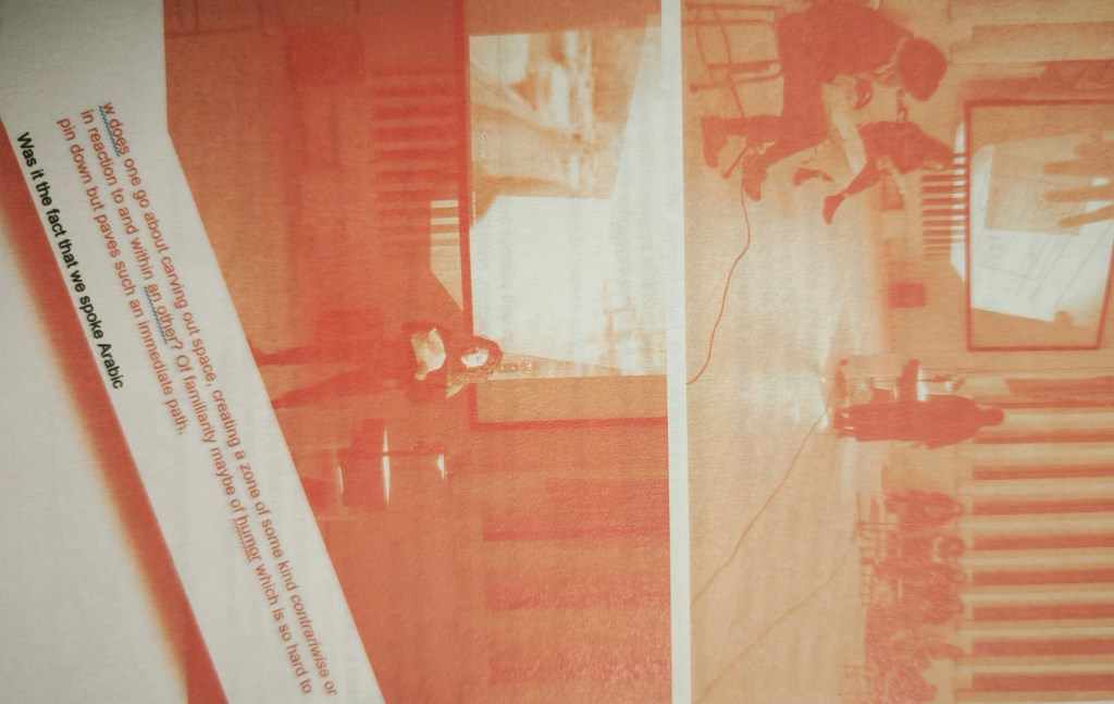 Hospitality is a central theme in the practice of Yani. In the lecture-performance, language is declared as a host. An artist’s domestic space becomes the host in a subsequent, private act. In “Research Interrupted” at BAK, their publication serves as the host. Each scenario examines how they occupy spaces without fully settling, being temporarily hosted yet potentially held hostage by these transient conditions. The English language acts as the constant host, subtly infusing every interaction with its presence and framing each encounter within this primary, underlying structure.