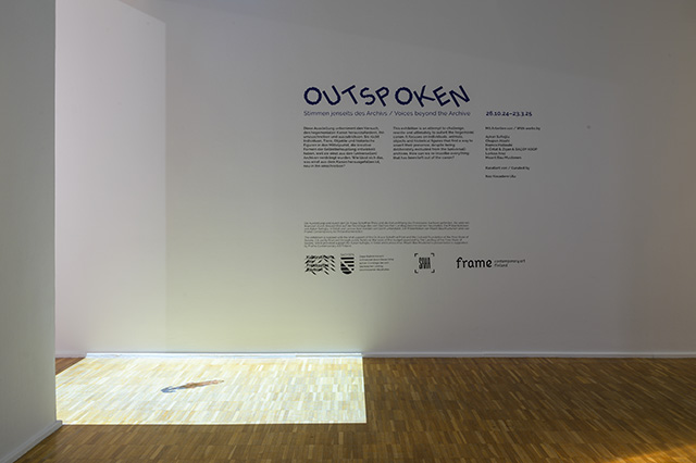 All installation views from Outspoken: Voices Beyond the Archive exhibition; Galerie für Zeitgenössische Kunst Leipzig, Germany. Photographed by Alexandra Ivanciu.