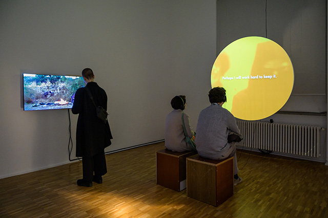 NKU: This paradigm shift reveals itself through the artworks that operate in portraying multiple personas, reviving haunted animals, highlighting alternative narratives through dismantling the Western Modernist readings, and substituting corporeality towards a textual or botanical entity. The artworks by İz Öztat, Maarit Bau Mustonen, Larissa Araz, Hamza Halloubi, and Chupan Atashi move between historiographies, archives, institutions, various entities, as well as different languages.